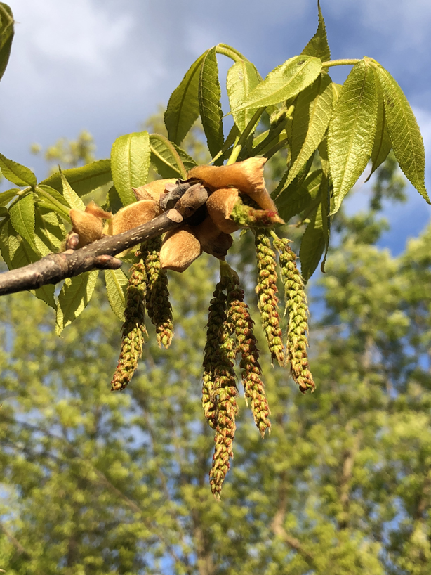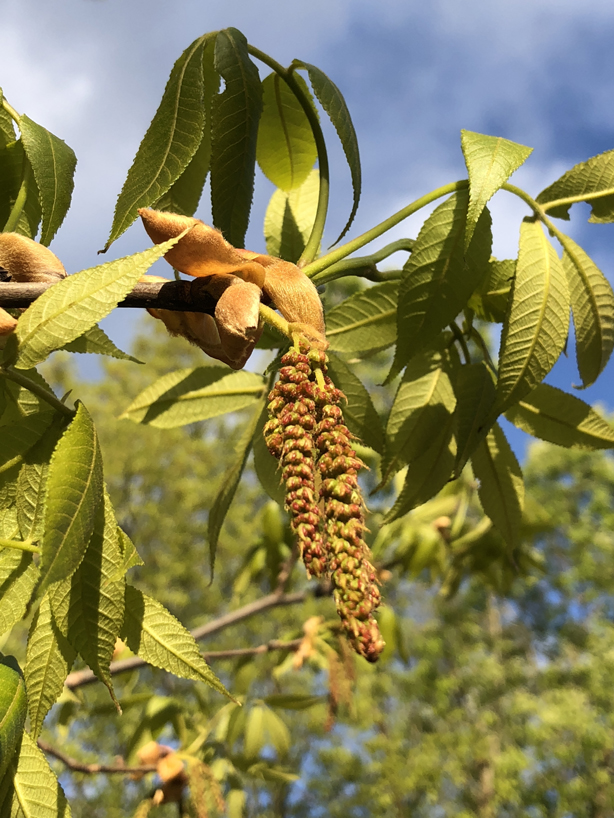 2021-04-22_18_36_30_Male_flowers_(catkins)_and_new_spring_leaves_on_a_Mockernut_Hickory.jpg