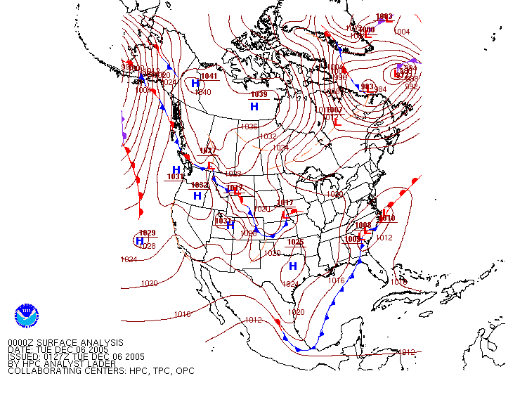 Surface Pressure Map from 0000Z 06 December 2005 (7PM EST 05 December 2005)
