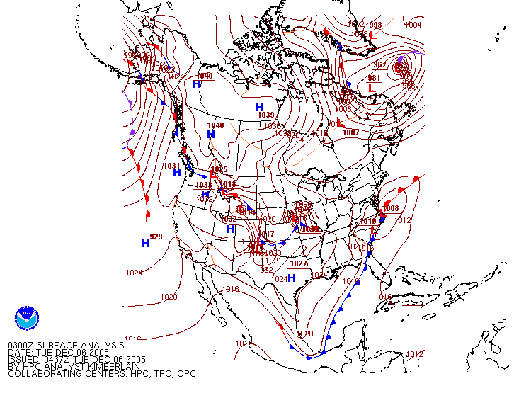 Surface Pressure Map from 0300Z 06 December 2005 (10PM EST 05 December 2005)