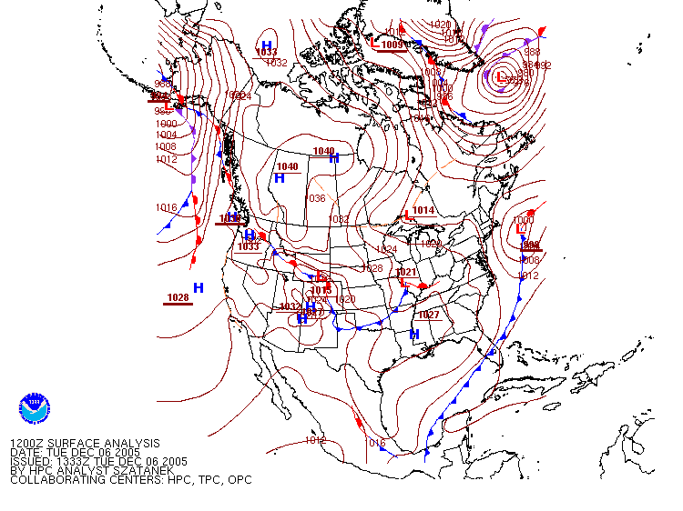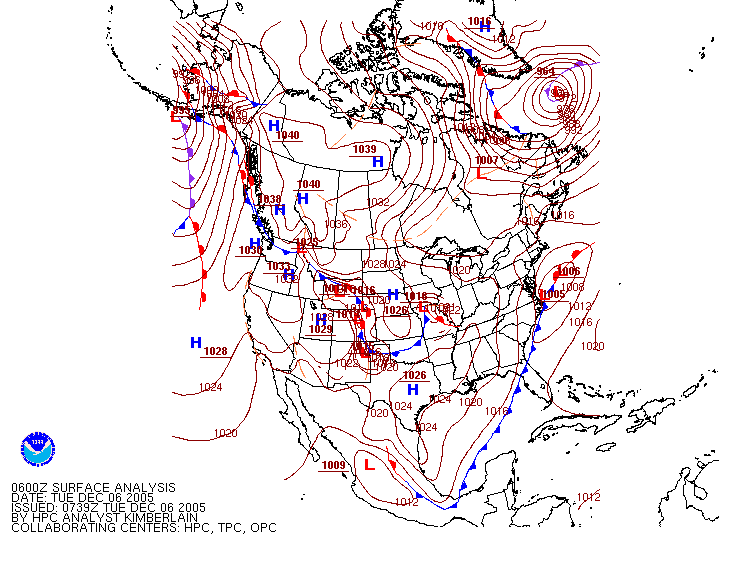 Surface Pressure Map from 1200Z 06 December 2005 (7AM EST 06 December 2005)