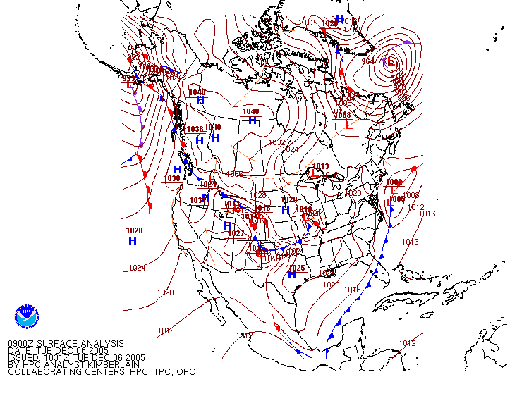 Surface Pressure Map from 0900Z 06 December 2005 (4AM EST 06 December 2005)